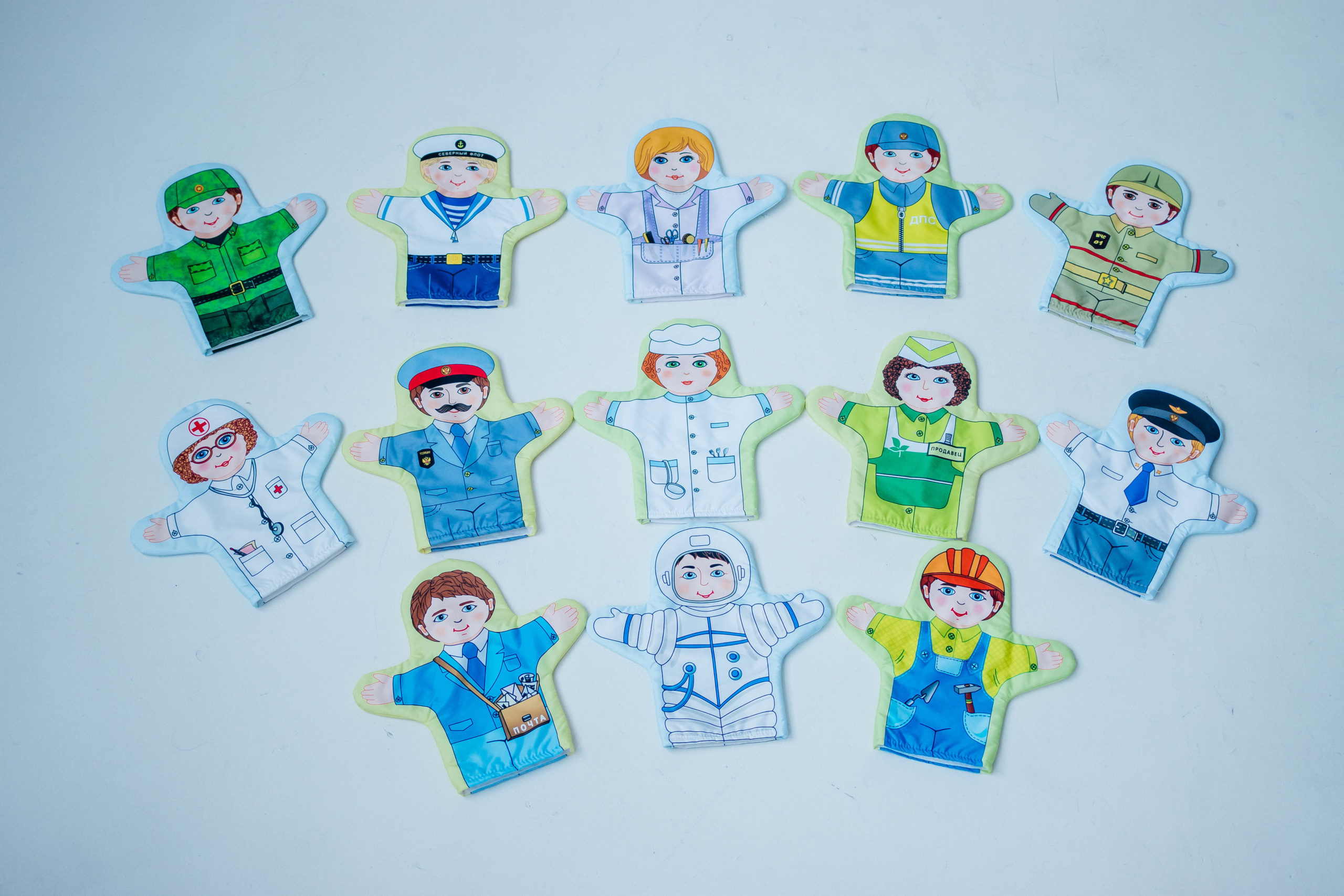 Набор мягких ярких рукавичек познакомит вашего ребенка с основными профессиями. Это — продавец, строитель, врач, моряк, парикмахер, пилот, повар, пожарный, почтальон, полицейский, полицейский ДПС, военный, космонавт. Рисунок нанесен на ткань с помощью печати. Высота рукавичек 22 см и она идеально подойдет как для детской, так и для взрослой руки и с легкостью на нее надевается. Подробнее