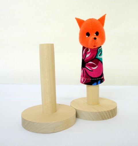 Куклы шагающего театра нужно закрепить на подставке за любую из петель на ногах персонажа, а куклы пальчикового театра просто надеть на подставку сверху.