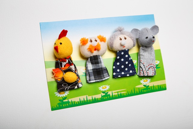 Персонажи, входящие в состав пальчикового театра «Курочка Ряба» — дед, бабка, мышка, курочка с золотым яичком.