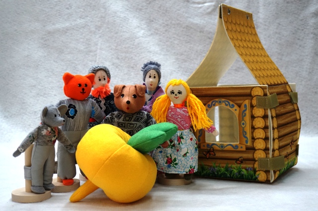 Перед вами – шагающий театр «Репка», в который входят следующие персонажи: дед, бабка, внучка, Жучка, кошка, мышка, репка, а также разборный мягкий домик для хранения, переноски персонажей, который вы также сможете использовать в качестве мини-декорации для постановок.