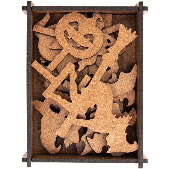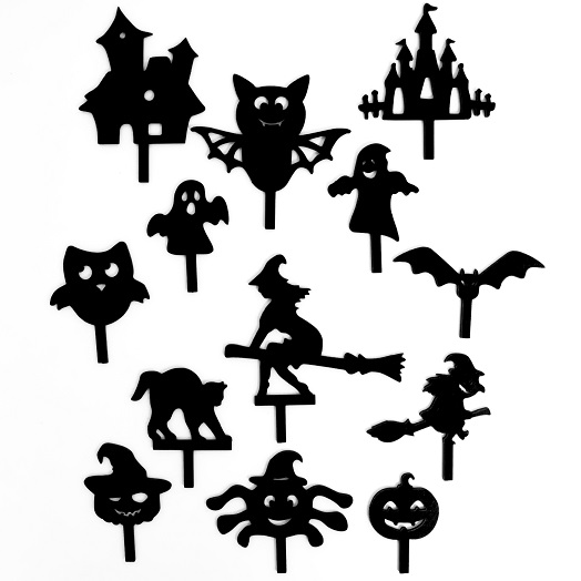 Деревянные силуэты (2 замка, кот, 2 ведьмы, тыква, тыква в шляпе, 2 летучие мыши, сова, паук, 2 приведения)