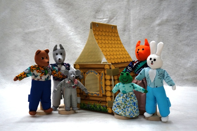 Перед вами – шагающий театр «Теремок», в который входят следующие персонажи: медведь, волк, лиса, заяц, мышка, лягушка, а также разборный мягкий домик для хранения, переноски персонажей, который вы также сможете использовать в качестве мини-декорации для постановок.