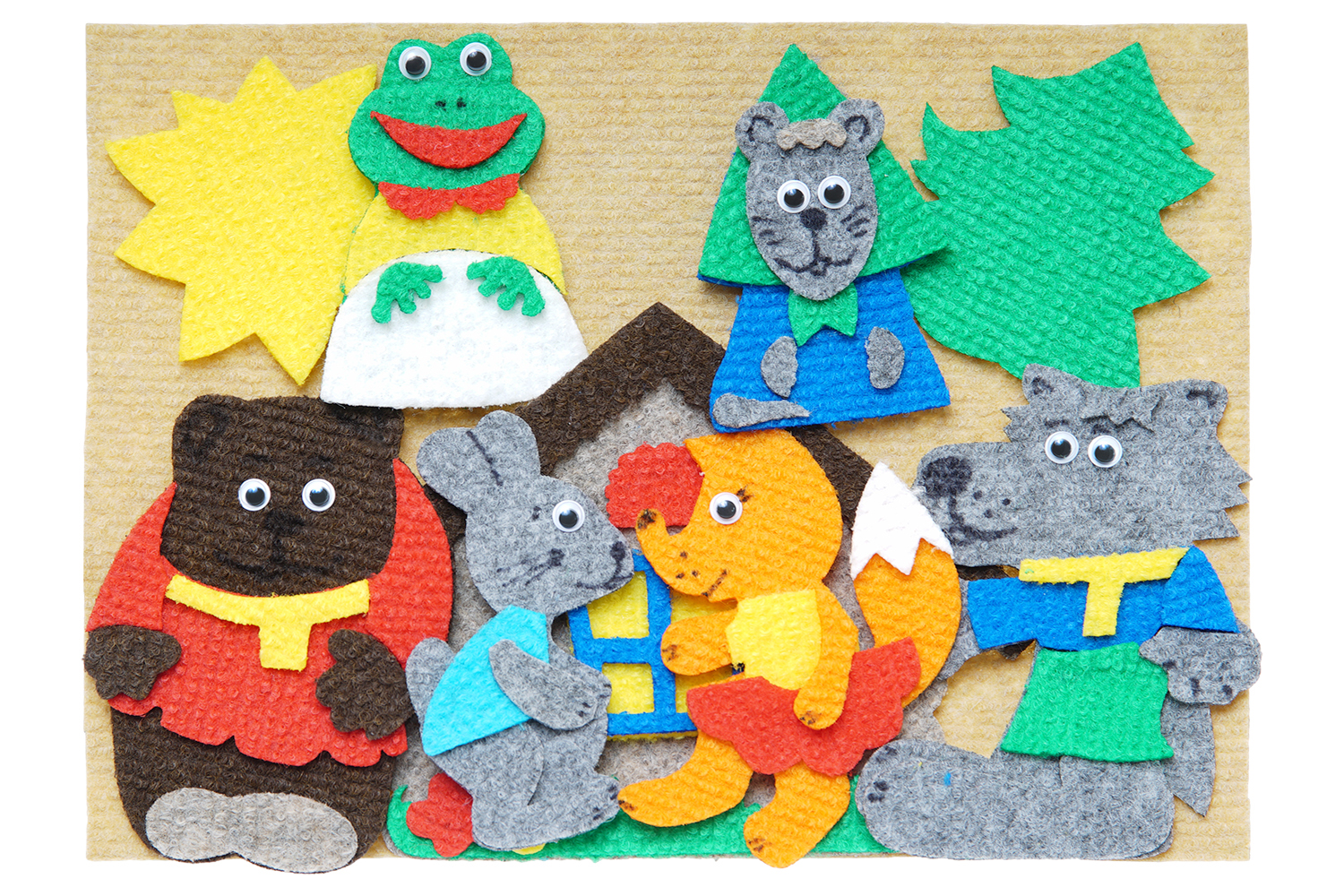 Поле 20*30см, теремок, медведь, волк, лиса, заяц, лягушка, мышка, солнышко, елочка. Фигурки 4,5*10см.