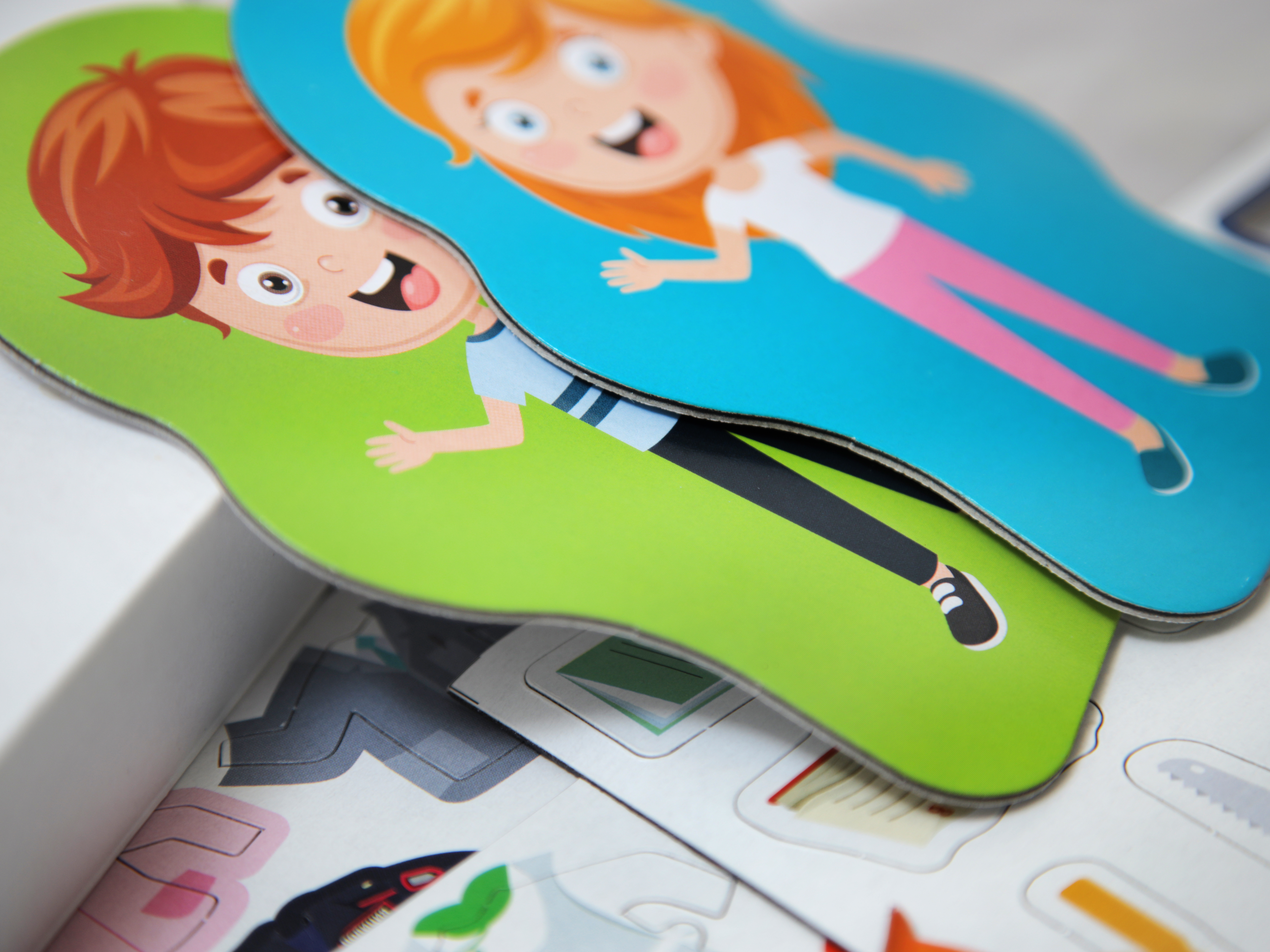 Магнитная игра «Одевашки. Профессии» (серия «Магнитные истории»). Состав: фигурка-основа – 2 шт. (14,5 х 8,5 см), магнитные элементы (одежда) – 66 шт. на четырёх листах. Материал: картон, бумага, магнитный винил, мягкое железо. Для детей от 3 лет. Развивает фантазию, вкус, чувство стиля, логику, а также учит различать цвета и предметы одежды.