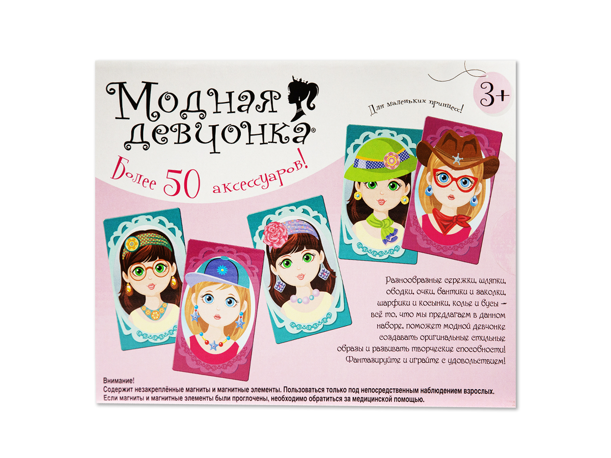Магнитная игра «Модная девчонка» предлагает создать оригинальные стильные образы модных девочек. Разнообразные сережки, шляпки, ободки, очки, бантики и заколки, шарфики и косынки, колье и бусы Вы найдете в нашем наборе.