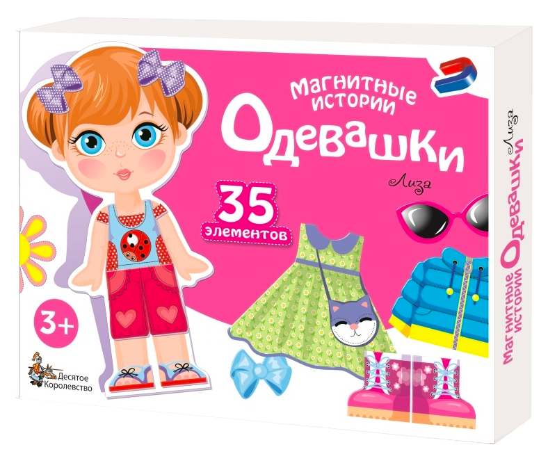 Магнитная игра «Одевашки. Лиза» (серия «Магнитные истории»). Состав: фигурка куклы Лизы – 1 шт. (215 х 120 мм), магнитные элементы (одежда) – 35 шт.