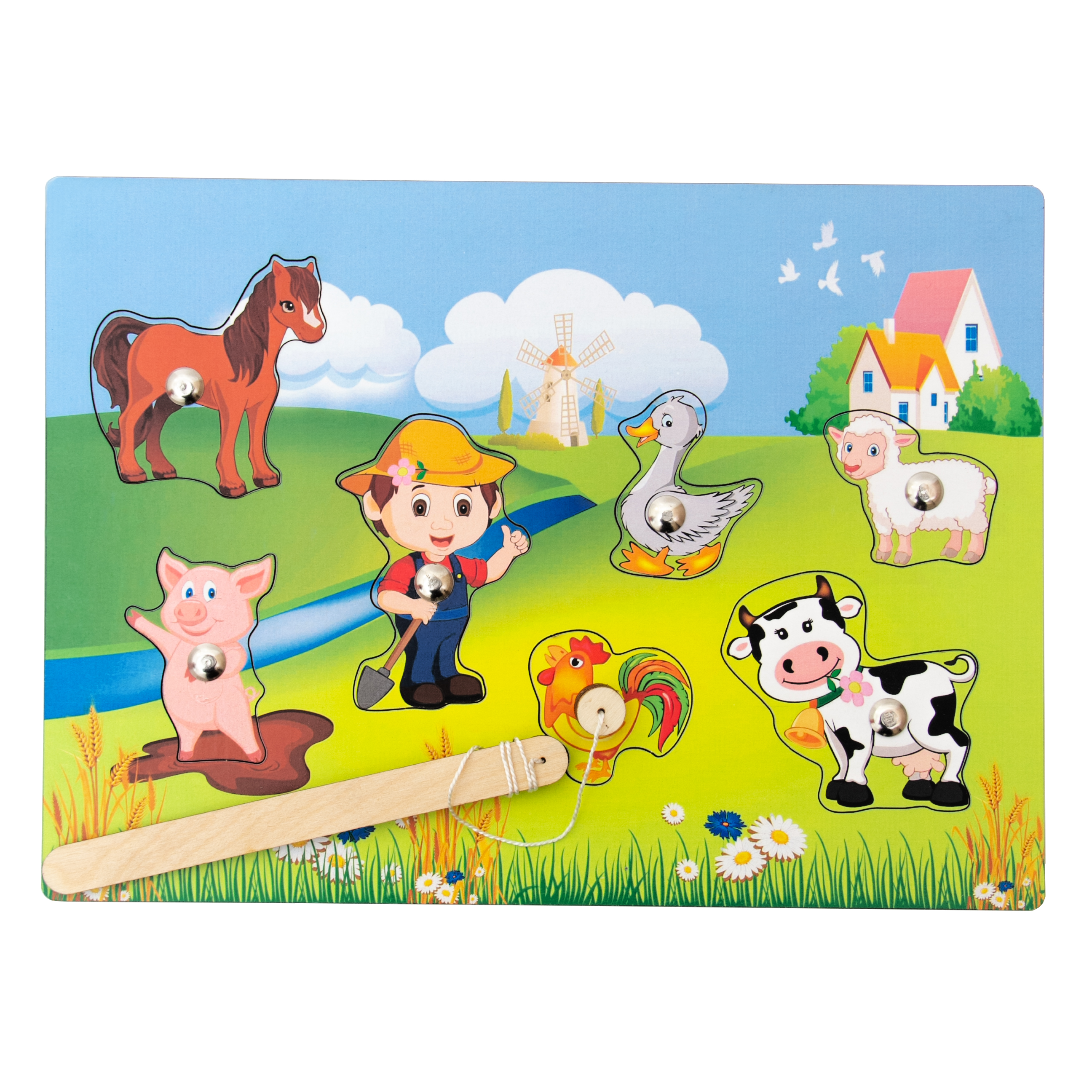Фигурки фермера и деревенских животных на магнитах: фермер, корова, овечка, петух, гусь, поросенок, лошадка.