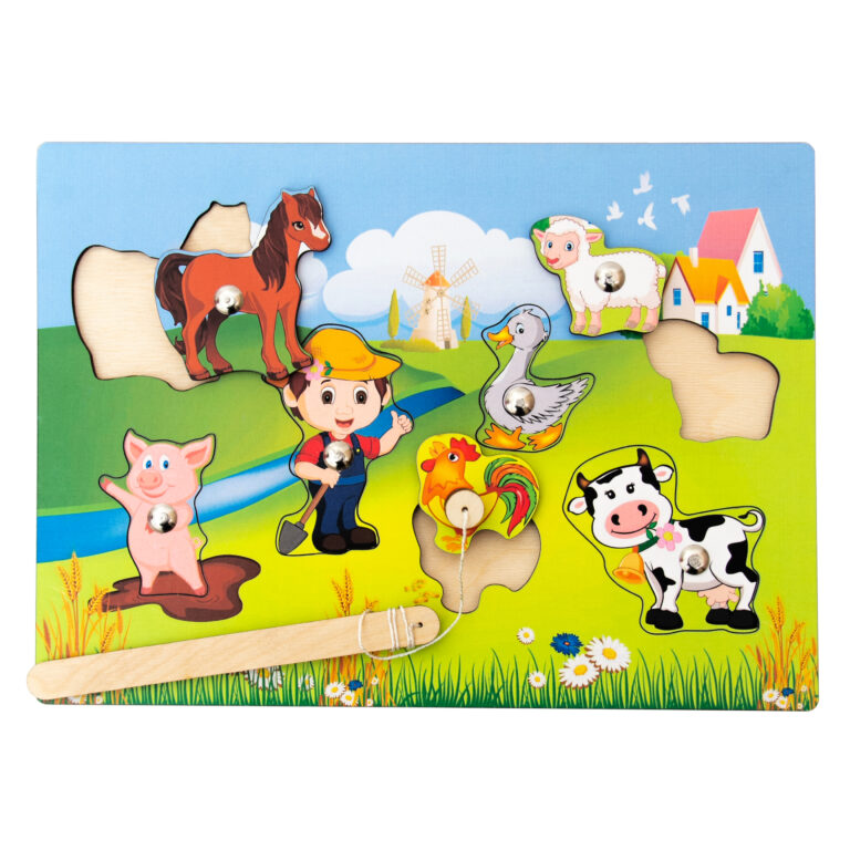 3. Развивается мелкая моторика. Вставляя определенным образом фигурки деревенских животных на панель, ребенок прекрасно тренирует пальчики.