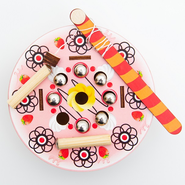 Рассмотрите, что нарисовано на деревянной панели, сладости и цветочки.