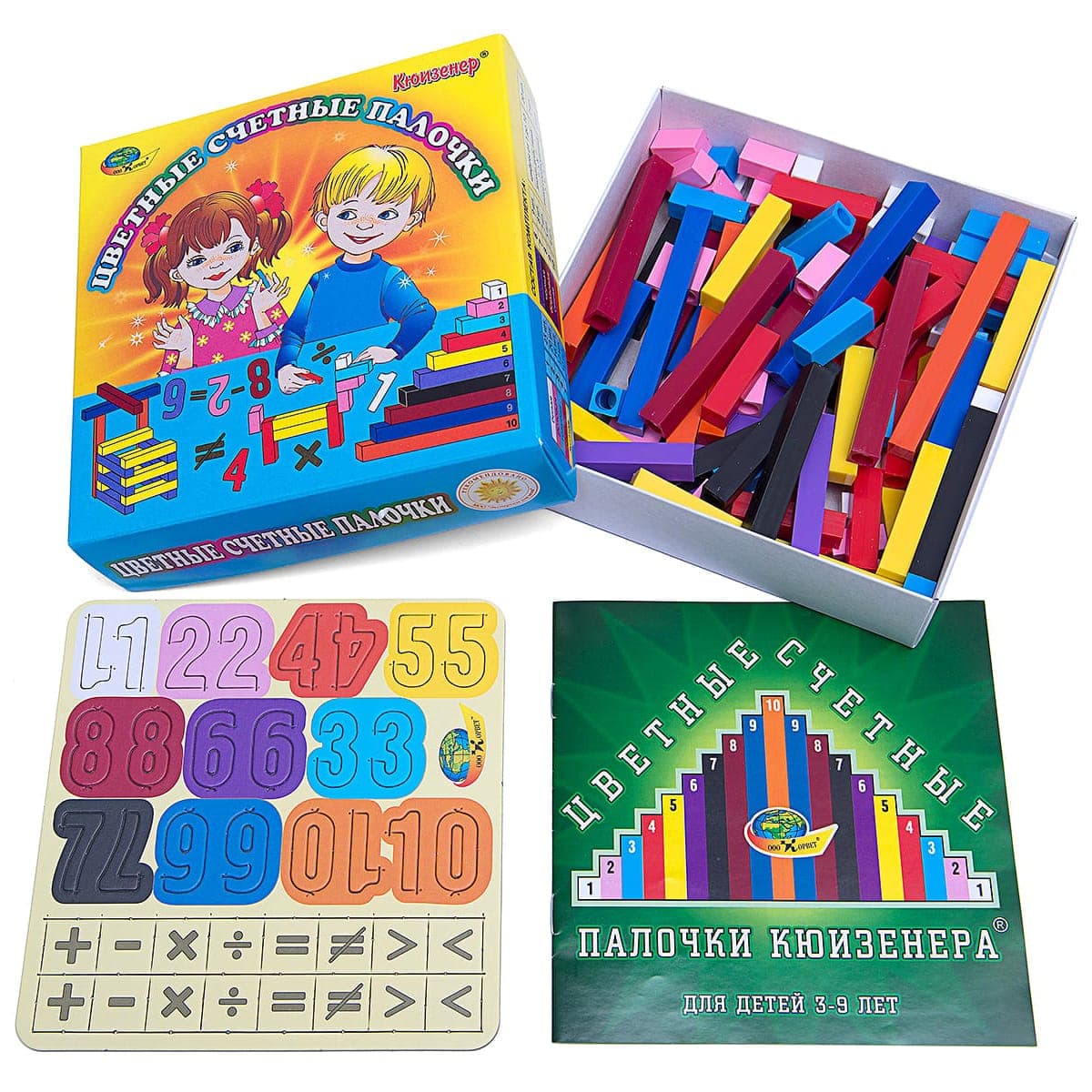 Состав игры «Цветные счетные палочки Кюизенера»: