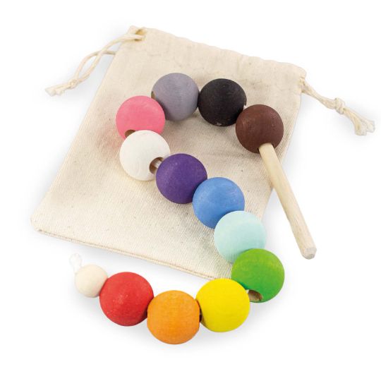 Базовая цель игры - нанизывание шариков на шнурок. С помощью цветных шаров можно изучать счет, названия цветов, играть в различные игры, в том числе и подвижные. Даже простое перекатывание шариков в ладошке способствует развитию мелкой моторики. Состав набора: 12 шариков диаметром 2,5 см, шнурок с деревянным наконечником, льняной мешочек, деревянный поднос.