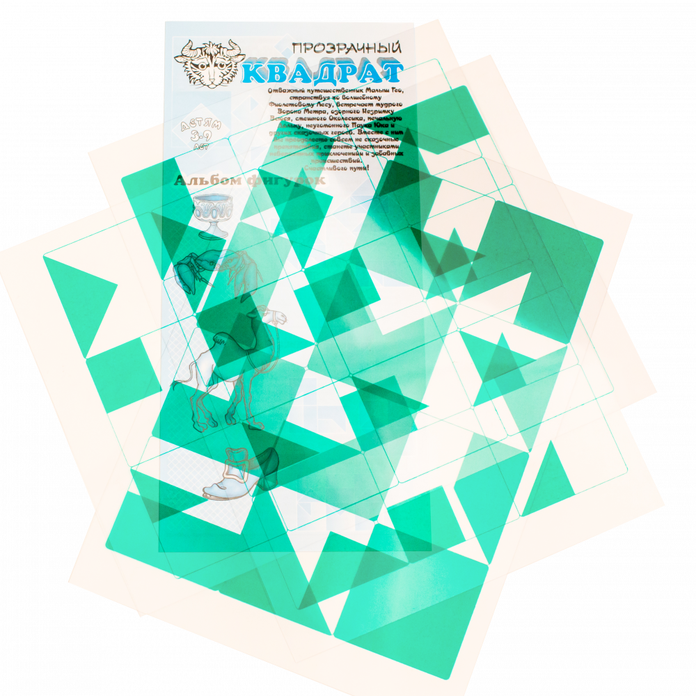 Состав: 30 пластинок из прозрачного пластика (62х62 мм), на каждую нанесено изображение геометрической фигуры - квадрата, прямоугольника, треугольника, прямоугольной трапеции, пятиугольника или шестиугольника; инструкция