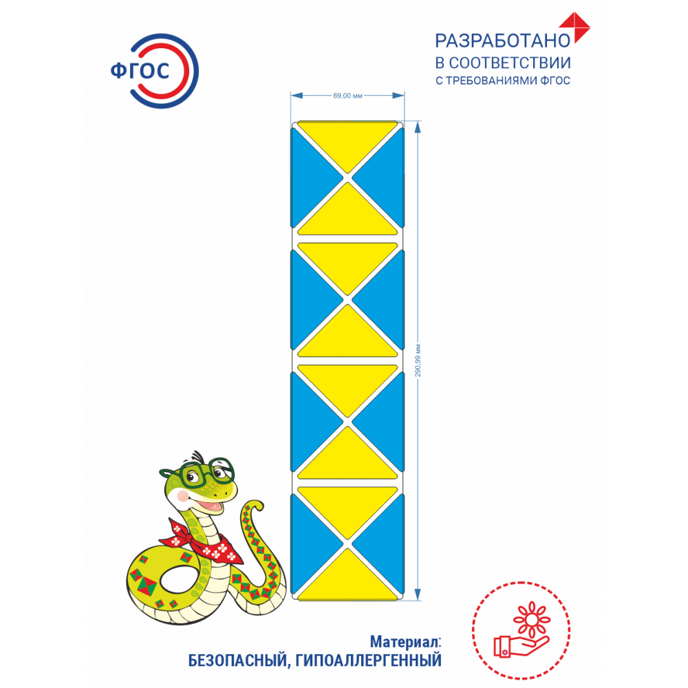 из 32-х картонных треугольников (16 красно-зелёных на одной стороне и 16 жёлто-голубых – на другой).