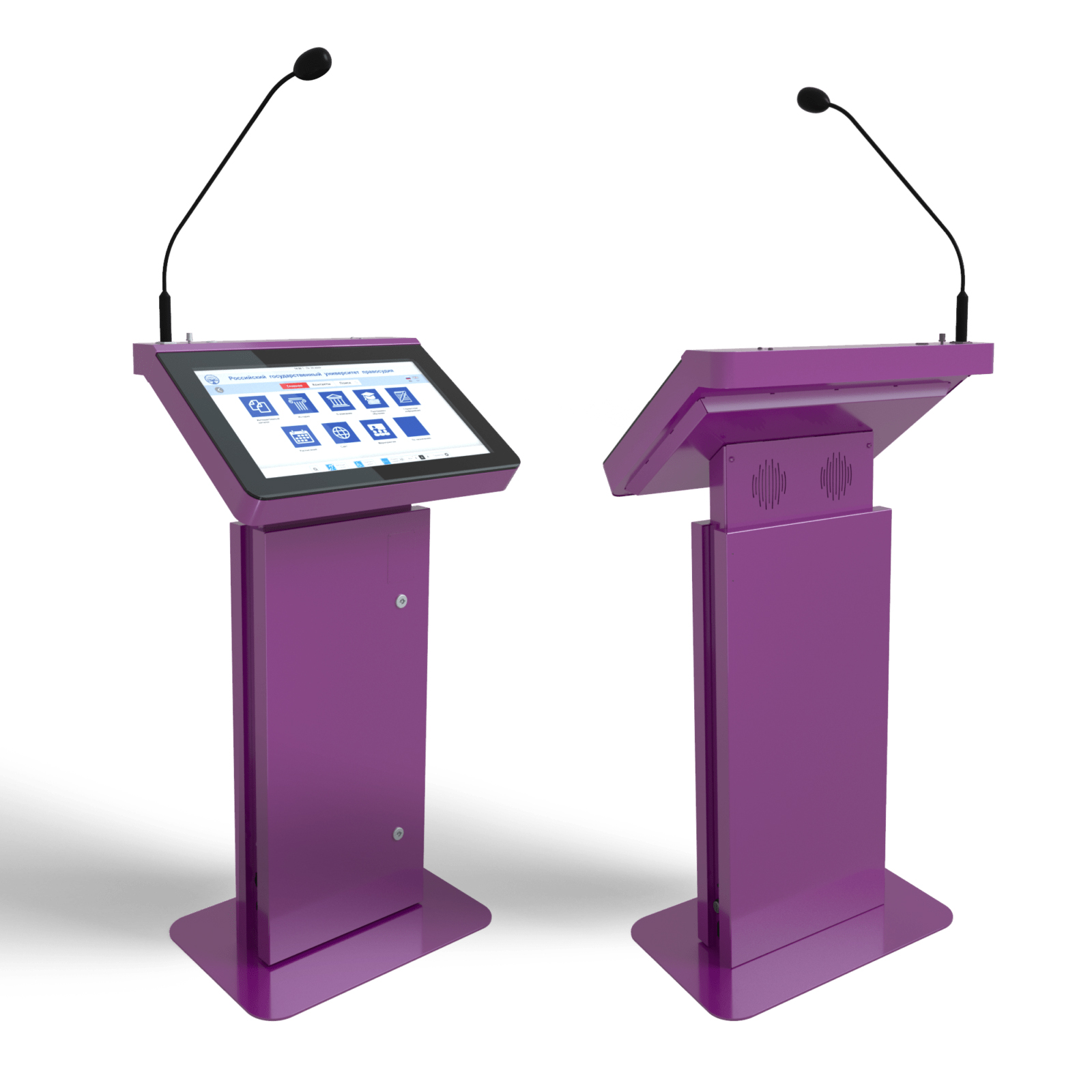 Интерактивная трибуна - мультимедийный помощник публичных выступлений. Оборудование выполнено в виде удобной трибуны с сенсорной панелью. Интерактивная панель — это интегрированный компьютер с микрофоном и другим оборудованием.