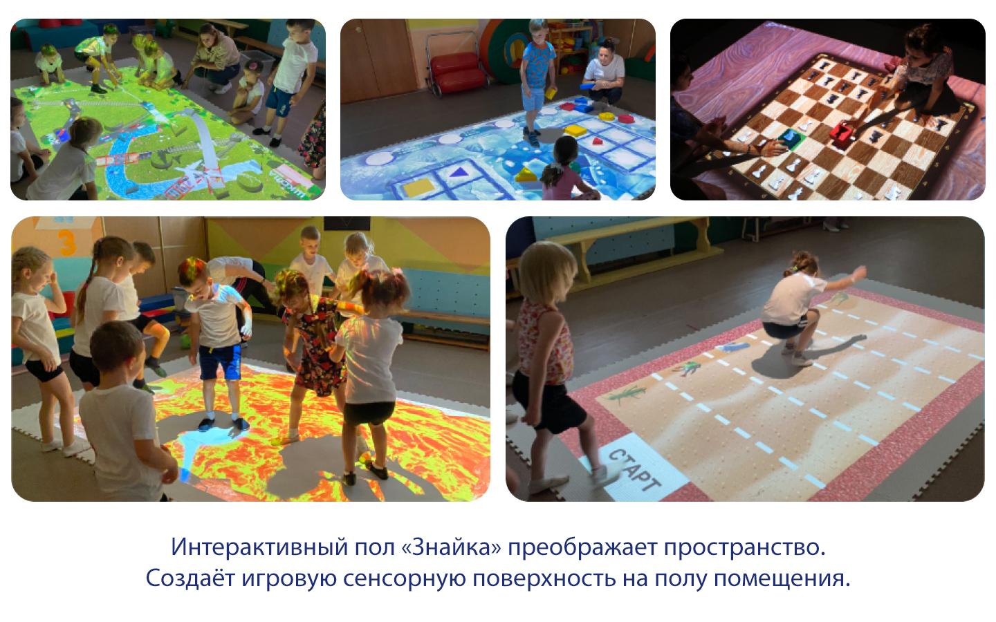 Интерактивный комплект оборудования с проекцией на пол и обратной связью на действия детей на этой проекции. Продукт востребован в дошкольных образовательных учреждениях, развивающих центрах, а также в игровых комнатах и парках.