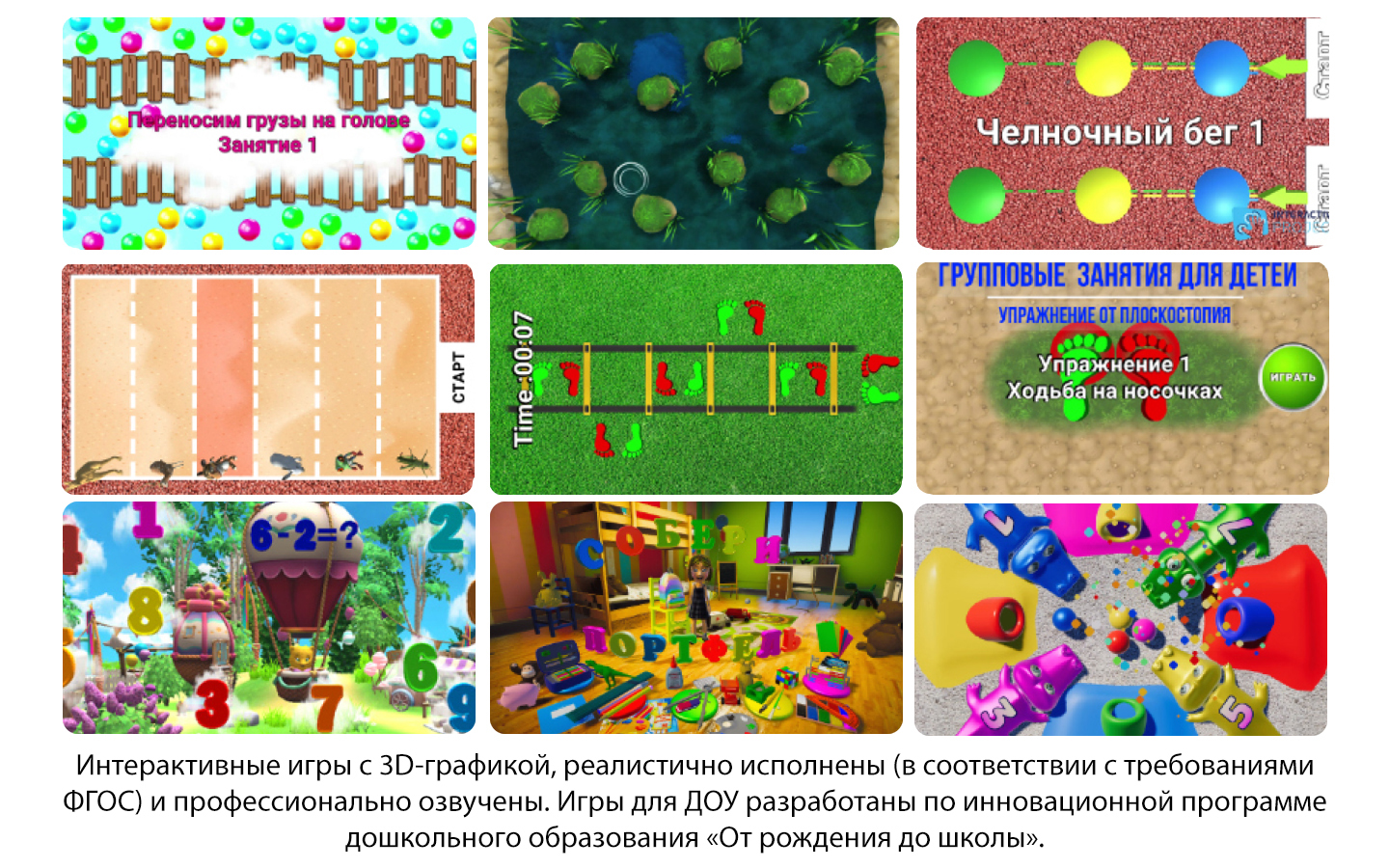 2) Блок игр на выбор: Развивающий, развлекательный или оздоровительная физкультура, более 40 игр.