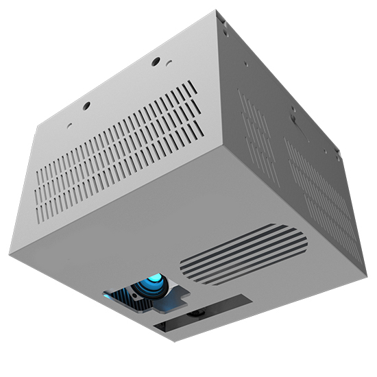 Монтаж системы на потолок. Основание потолка (желательно бетон) должно выдержать вес оборудования около 25 килограмм. Не допускается монтаж оборудования на подвесной потолок без закладных под оборудование. Максимальный размер проекции зависит от высоты размещения, чем выше закреплен комплект, тем больше проекция, но есть ограничения по максимальной высоте размещения. Подробнее
