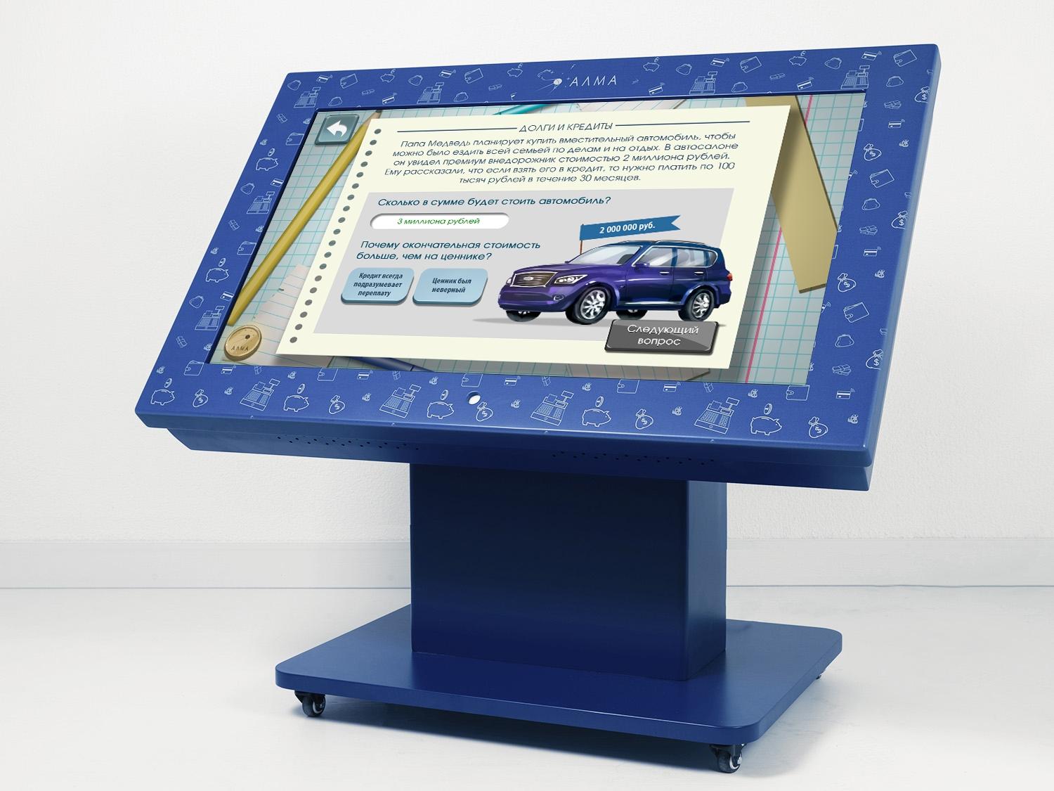 Методический интерактивный стол «Финансовая грамотность» позволяет организовать традиционные и интерактивные игры в школах, показать информационные мультфильмы и провести полноценный обучающий курс с целью формирования правильных знаний и полезных привычек в теме финансов и семейного бюджета.
