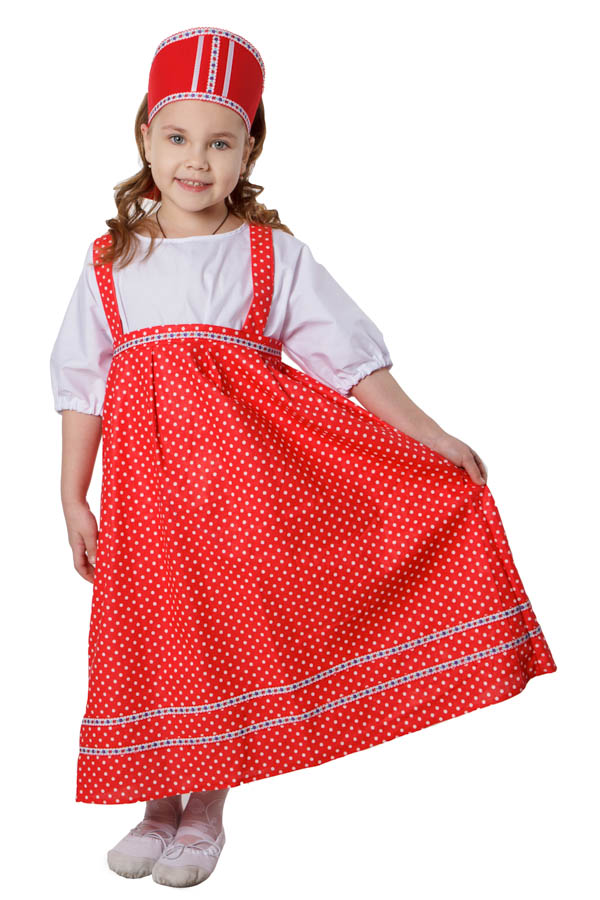 Материал: сарафан — 100% хлопок, блузка и кокошник — смесовая ткань 35 % хлопка, 65% полиэстера.