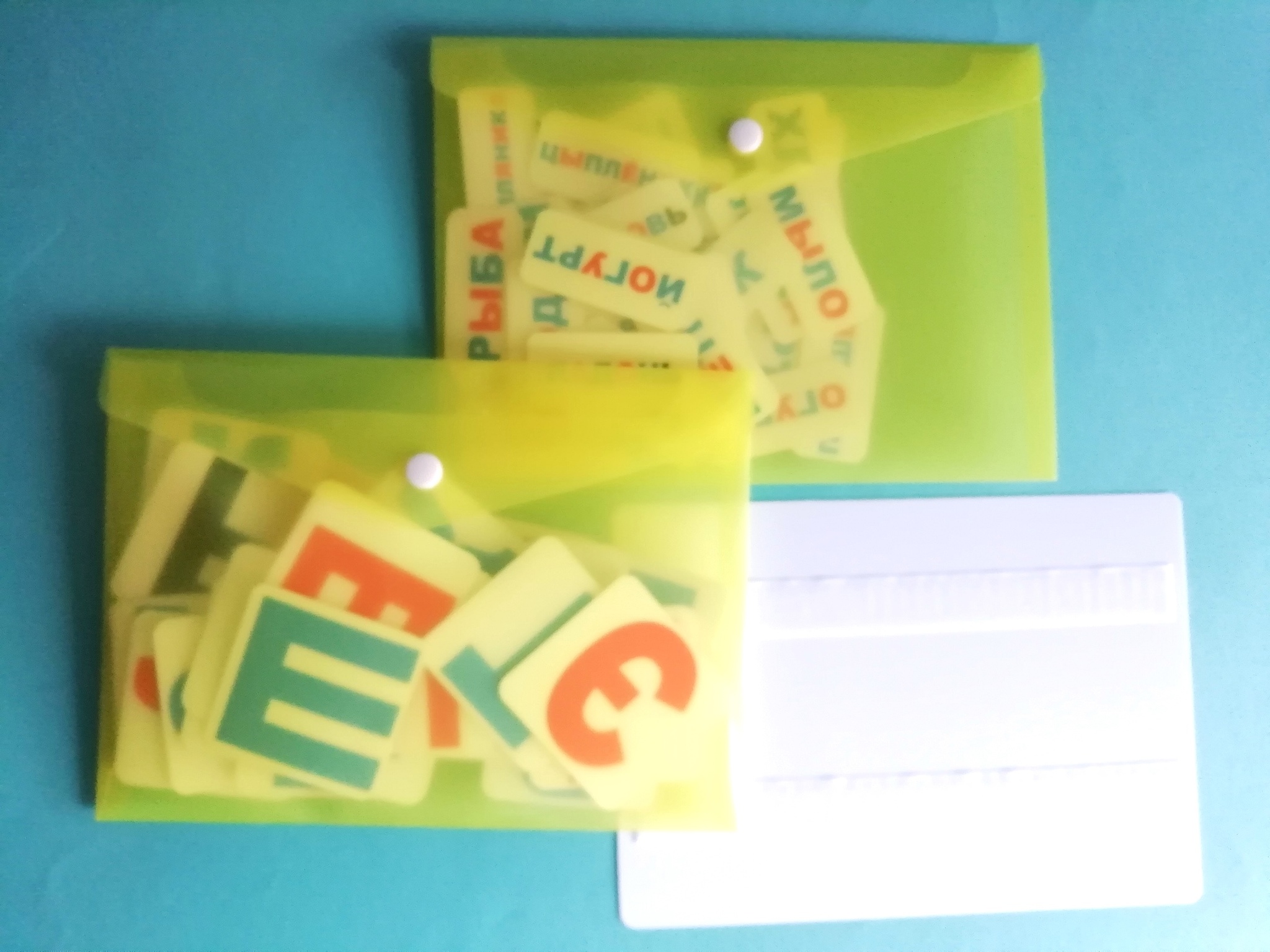 - 33 карточки со словом на каждую букву алфавита и картинкой (размером 6*6 см)