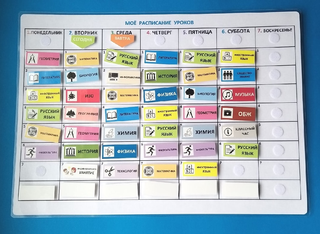 Пособие ПЕКС. Визуальное расписание УРОКОВ (СРЕДНЯЯ ШКОЛА)