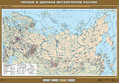 Учебн. карта "Черная и цветная металлургия России" 100х140