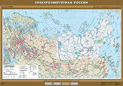 Значками разных цветов на карте изображены электростанции по виду используемой первичной энергии: тепловые, гидроэлектростанции, атомные, геотермальные. Размер значка характеризует установленную мощность электростанций. Фоновая окраска карты используется для показа зон централизованного энергоснабжения и изолированных энергосистем. Карта дополнена изображением линии электропередач разного напряжения.