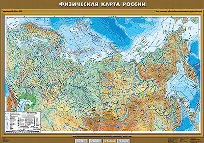 Учебн. карта "Физическая карта России" 100х140 (8-9 класс)