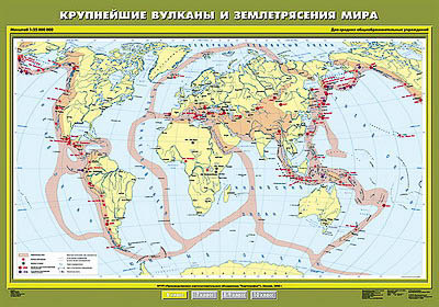 Учебн. карта "Крупнейшие землетрясения и вулканические извержения" 100х140
