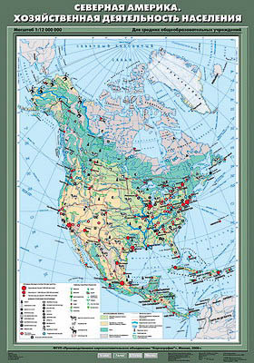 Учебн. карта "Северная Америка. Хозяйственная деятельность населения" 70х100