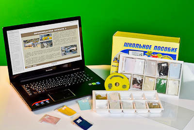 Интерактивное приложение содержит дополнительные сведения и иллюстрации, вопросы и задания и позволяет в удобной форме познакомить учащихся с производством бумаги, видами и свойствами бумаги и картона. Используя данное интерактивное приложение, учащиеся могут как с помощью учителя, так и самостоятельно ознакомиться со всеми разделами приложения и получить информацию по полному перечню образцов. Перечень образцов электронного приложения может отличаться от перечня натуральных образцов.