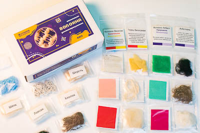 Коллекция включает образцы волокон и изготовленных из них тканей. Образцы разложены в пакеты с этикетками, содержащими название образца, тип волокна и краткую информацию о его свойствах, получении и применении. Также коллекция включает образцы волокон (расфасованы в маленькие пакетики с этикетками), предназначенные для расходования при проведении опытов по идентификации волокон и определении их свойств. Пособие комплектуется руководством по эксплуатации и ламинированным вкладышем, содержащим классификацию волокон, информацию об их свойствах, производстве и применении.