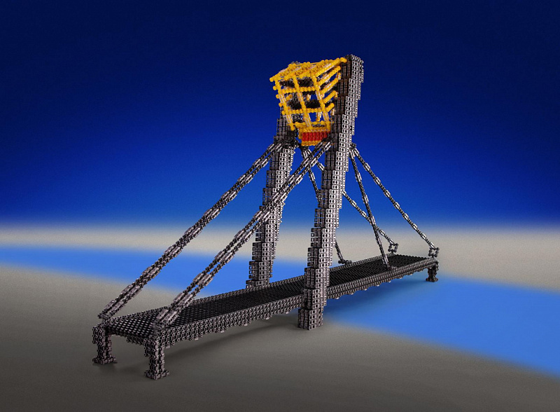 Благодаря данному набору ученики узнают о типах висячих мостов, в частности о конструкции вантового моста. Размер готовой модели 165х30х92см.