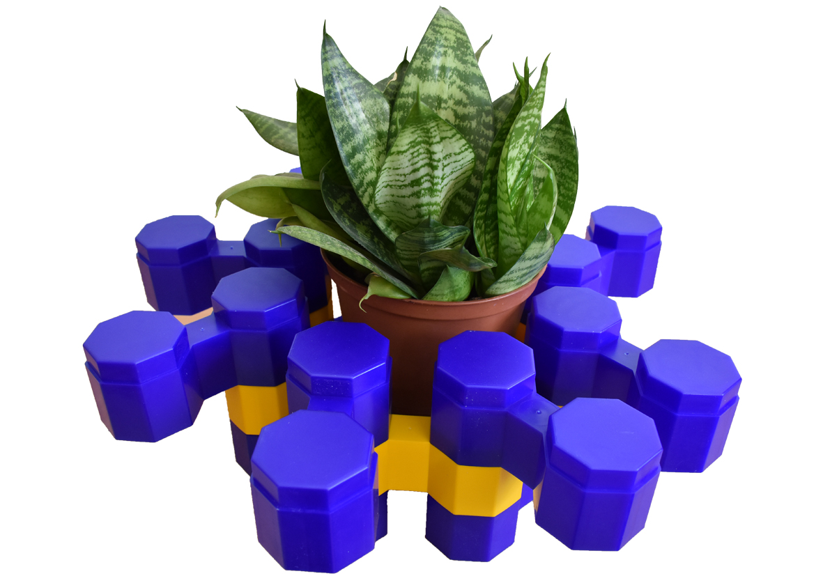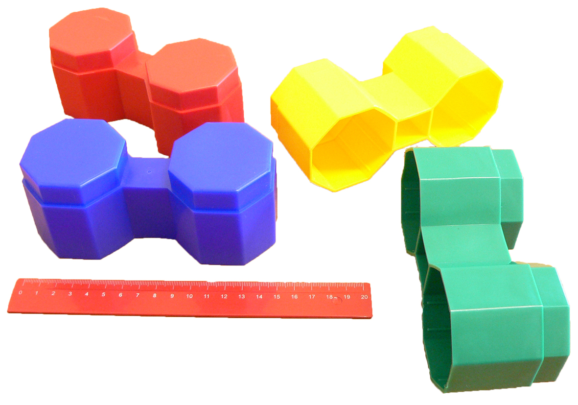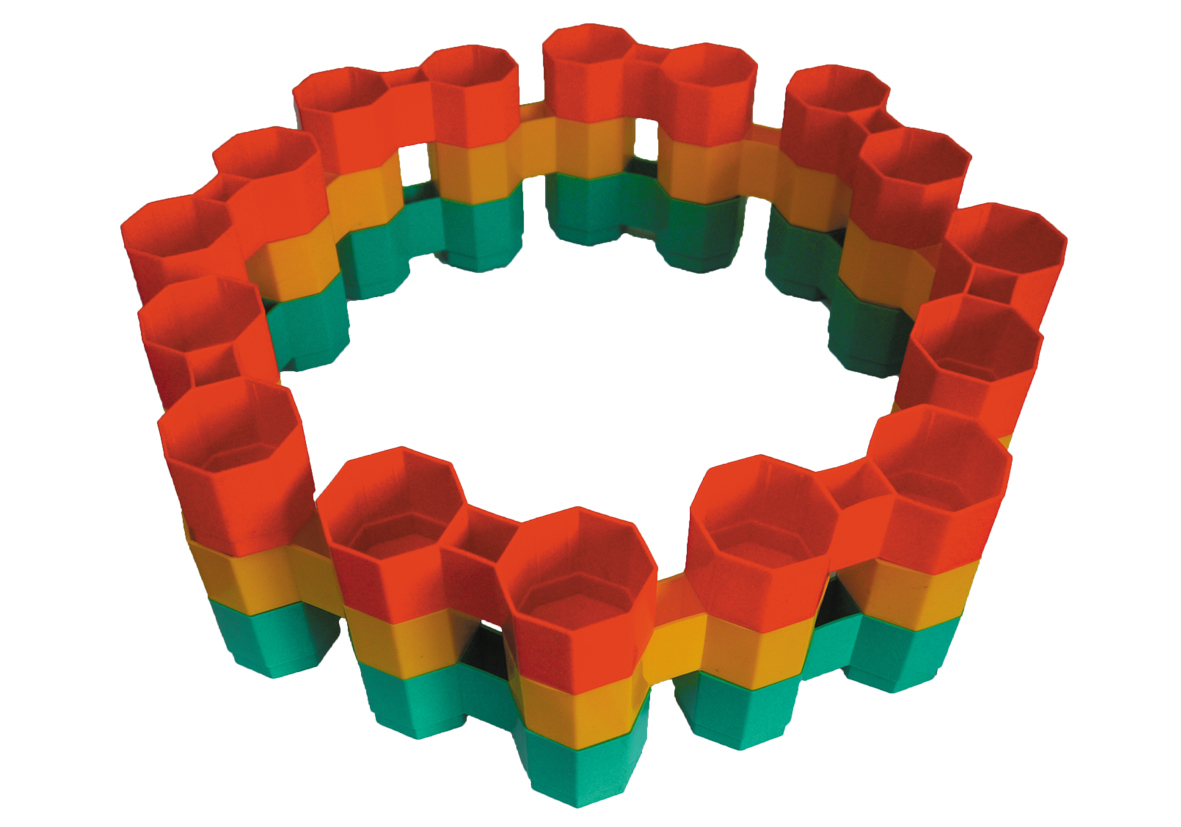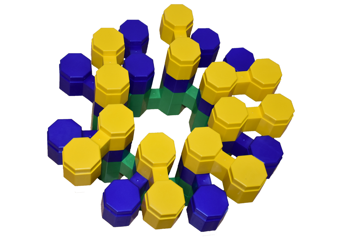 Конструктор СОТЫ представляет собой набор элементов, выполненных из гибкой и прочной пластмассы в виде полых "гантелек" длиной 14 см. Элементы конструктора соединяются путем насаживания один на другой.