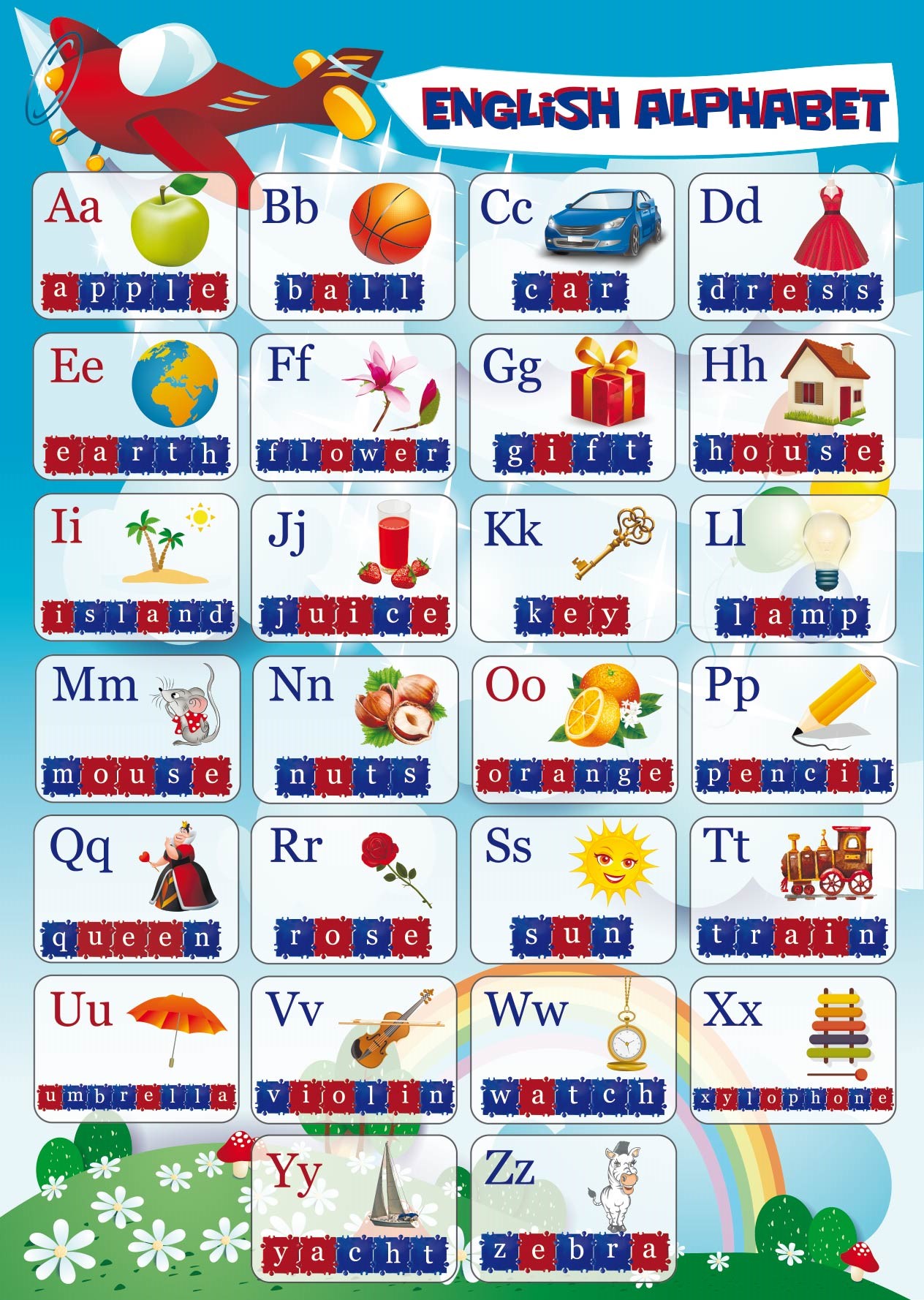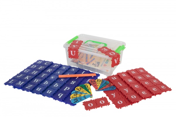 Набор "Английский язык" состоит из 100 квадратов с изображенными на них буквами (заглавными и строчными) английского алфавита. Помогает изучать английский алфавит, составлять английские слова, накапливать словарный запас, превращая обучение английскому языку в увлекательную игру.