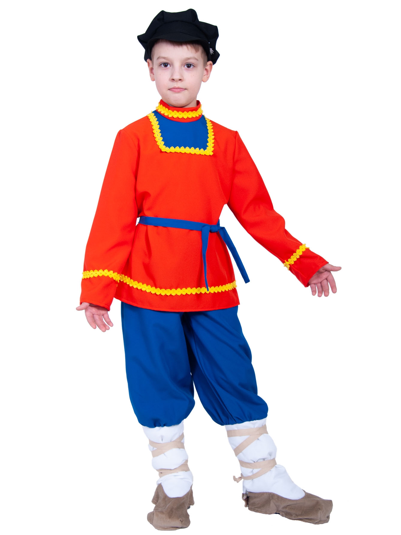 рубаха, штаны с лаптями-иммитация, кепка, пояс