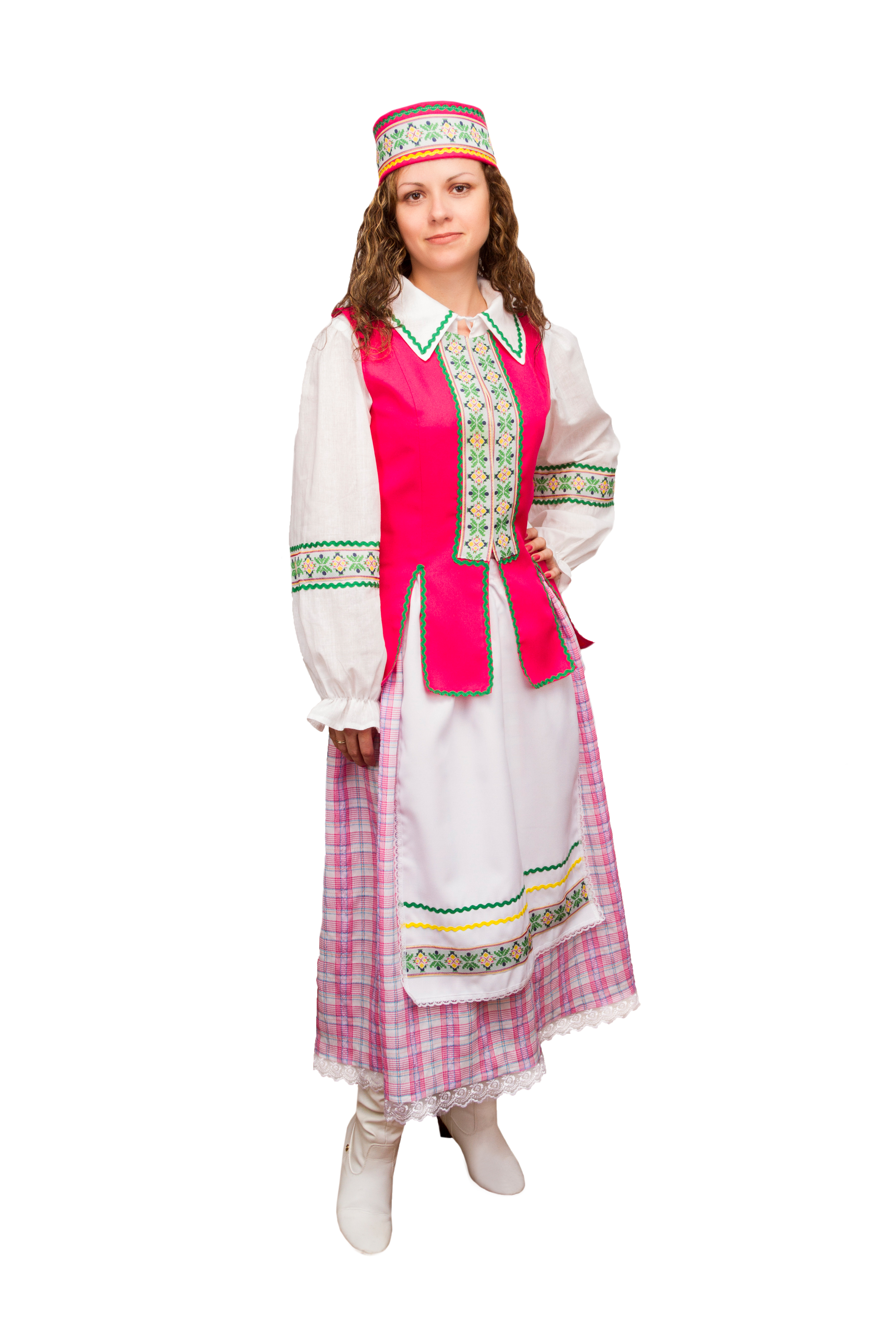 розовый комплект: головной убор, жилет, фартук, блузка, юбка