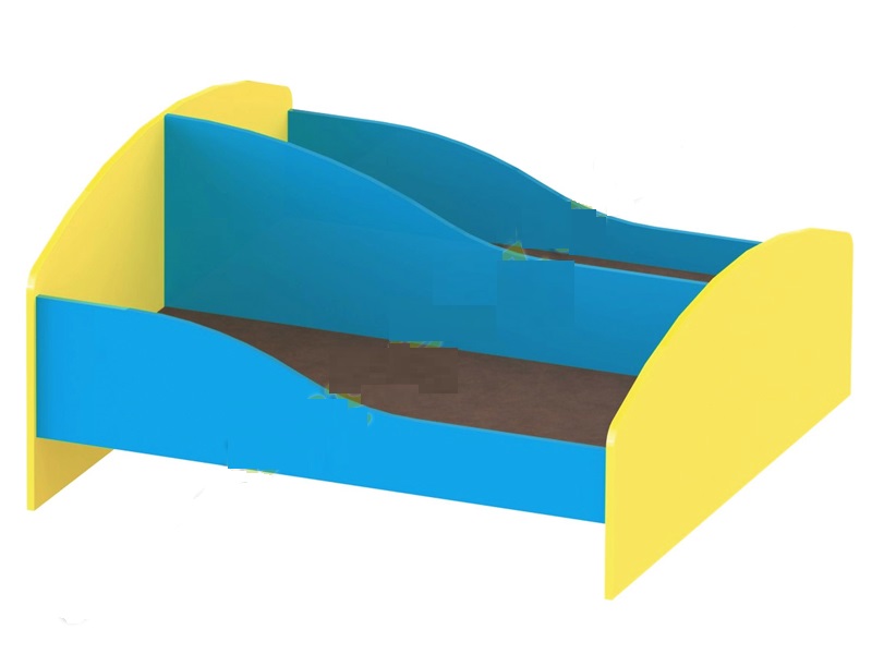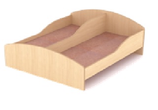 ЛДСП толщиной 16 мм, на спинках и бортиках кровати противоударный врезной кант 2 мм, на остальных деталях кромка 0,4 мм. Каркас соединен планками из ЛДСП шириной 120 мм, спинки фигурные, имеют пластиковые подпятники