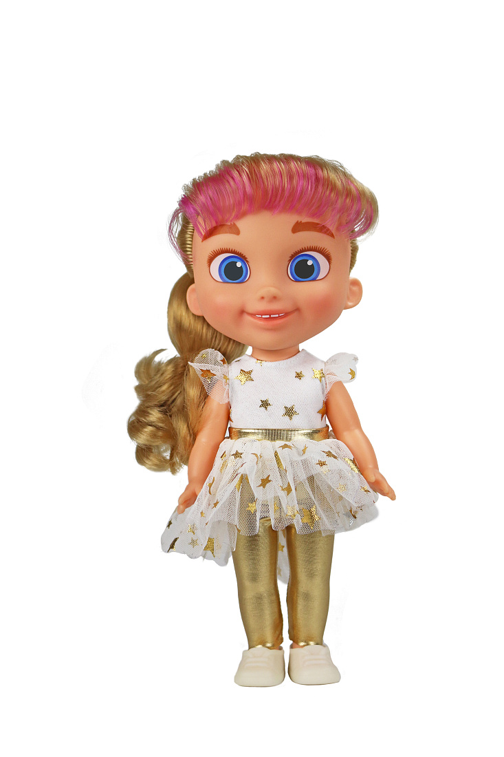 Размер куклы - 29 см, удобный для детской игры. У игрушки длинные густые волосы, как настоящие, на которых можно заплетать различные прически, укладывать локоны, расчесывать и мыть в воде. Голова и ручки выполнены из приятного на ощупь винила, туловище и ноги из плотной пластмассы. Глаза и брови нарисованы, выражение лица позитивное и доброжелательное, как у главной героини мультфильма.