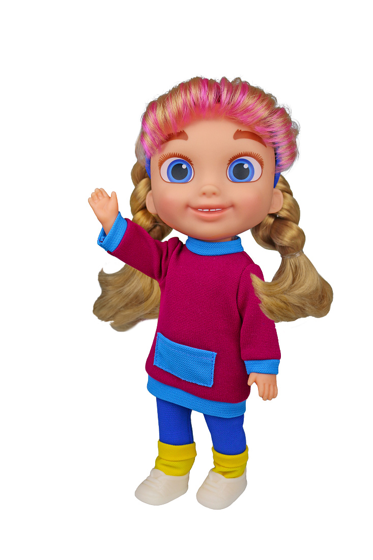 Размер куклы - 29 см, удобный для детской игры. У игрушки длинные густые волосы, как настоящие, на которых можно заплетать различные прически, укладывать локоны, расчесывать и мыть в воде. Голова и ручки выполнены из приятного на ощупь винила, туловище и ноги из плотной пластмассы. Глаза и брови нарисованы, выражение лица позитивное и доброжелательное, как у главной героини мультфильма.