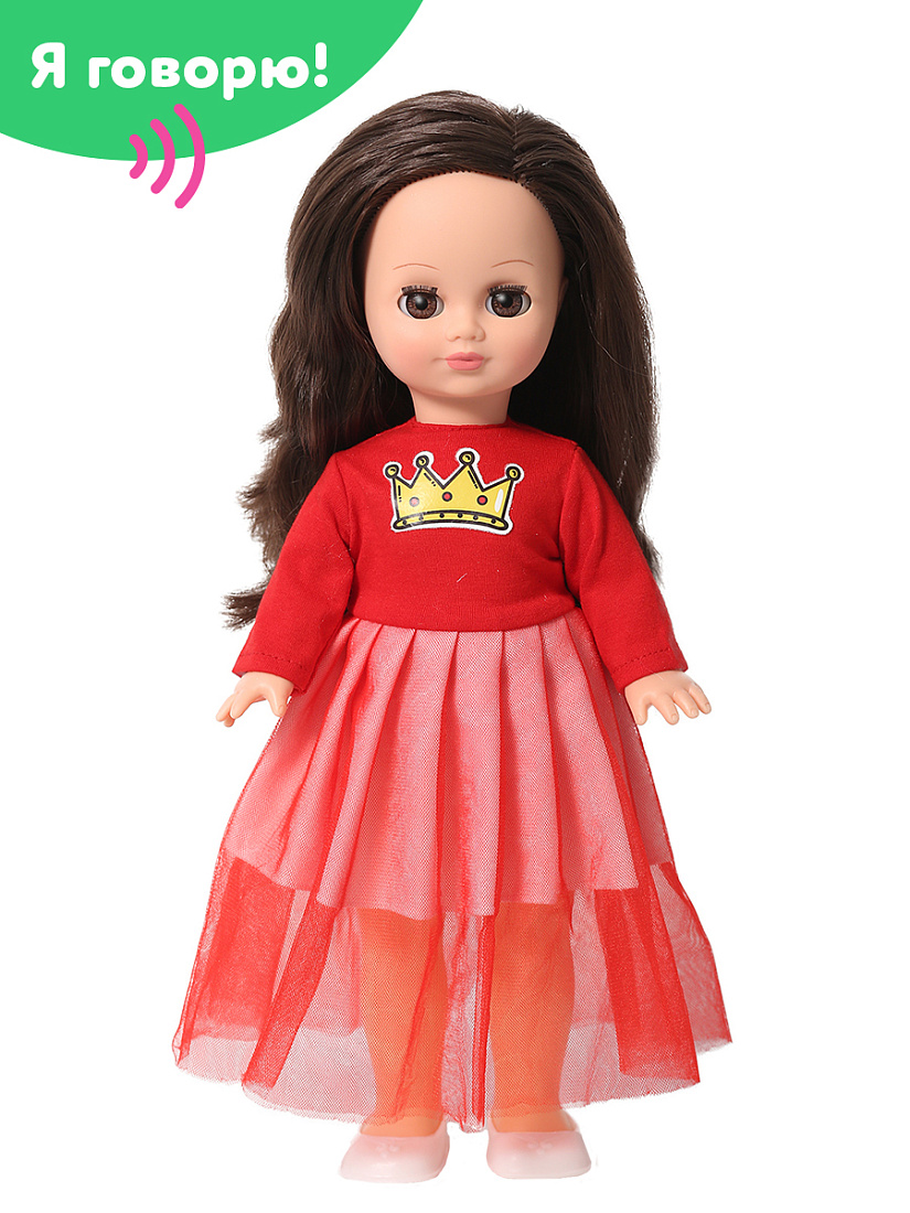 Элементы кукольной одежды, которые легко снимаются и надеваются, разнообразят возможности сюжетно-ролевых игр, в процессе которых развивается мелкая моторика и творческое воображение ребёнка. кукла озвучена. Кукла озвучена, говорит несколько фраз (до 8 фраз), активирующих к игровой деятельности.