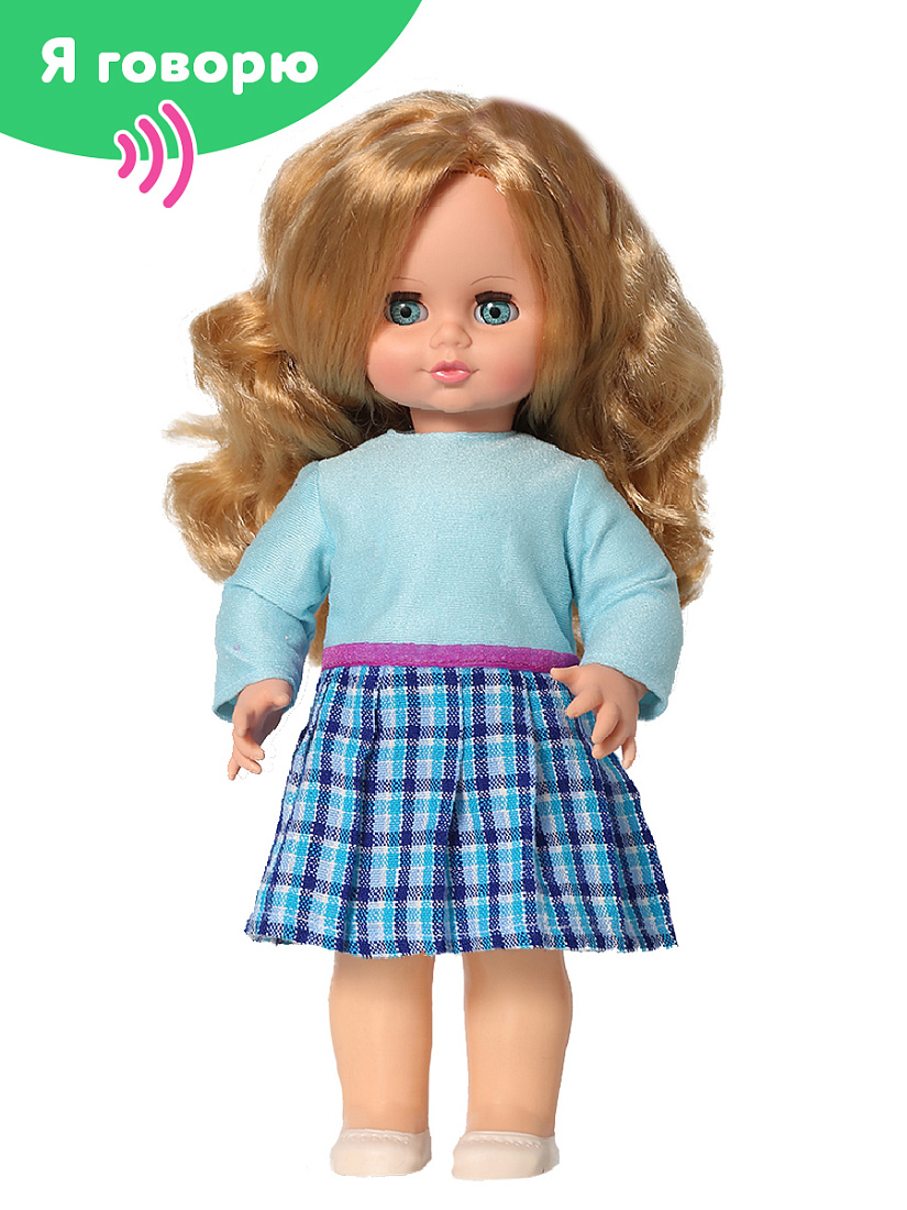 Рост куклы 42 см. Кукла Инна озвучена. Глаза вставные закрывающиеся. Тело куклы пропорционально. Ручки и голова выполнены из эластичного, приятного на ощупь винила, а туловище и ноги из пластмассы.
