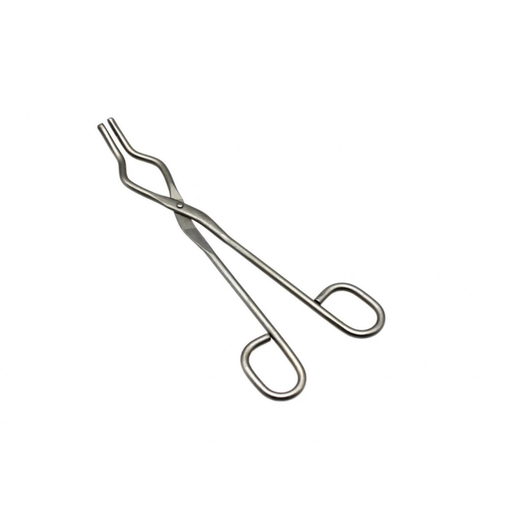 Щипцы представляют собой металлические ножницы с длинными ручками и изогнутыми концами, для лучшего захвата тиглей и другой лабораторной посуды.
