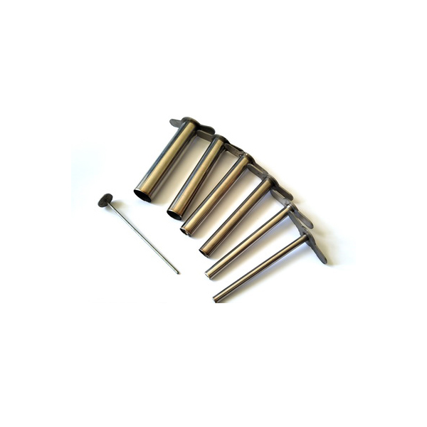 Набор свёрл изготовлен из металла, в комплекте 6 сверл и 1 толкатель. Каждое сверло имеет металлическую рукоятку для удобной работы по вырезания отверстий в пробках и свой диаметр: 1. 6мм.; 2. 8мм.; 3. 11мм.; 4. 13мм.; 5. 16мм.; 6. 19мм.