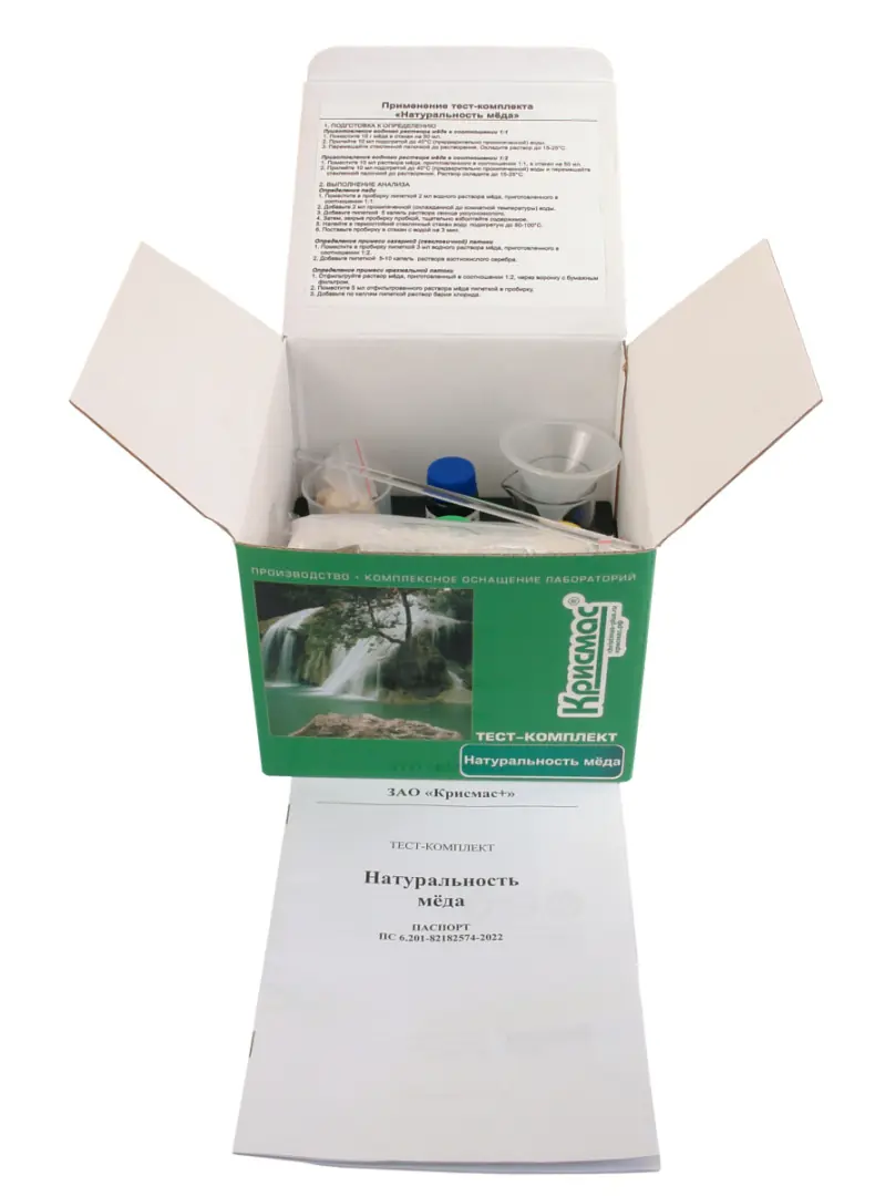Тест-комплект максимально прост и удобен в использовании, позволяет при минимальных затратах осуществлять полноценную оценку натуральности мёда, определять его подделки и фальсификаты.