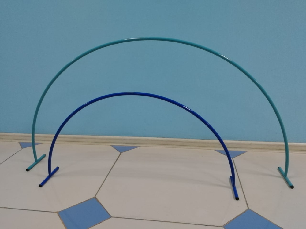 Дуга для подлезания представляет собой сварную конструкцию, состоящую из следующих основных частей: арки и двух опор. Размер: 700х1400 мм, материал дуги: стальная труба диаметром 12мм. Покрытие: порошковая эмаль. Дуга для подлезания используется как игровое оборудование для эстафет и подвижных игр.