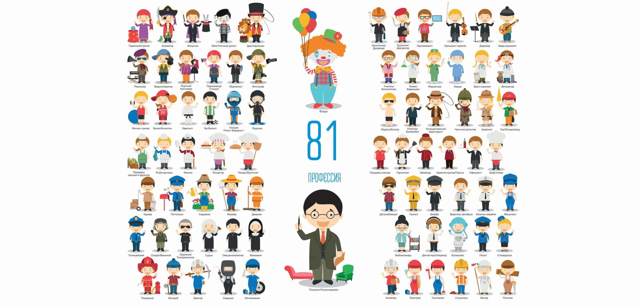 Виды профессий (81 шт.) + плакат