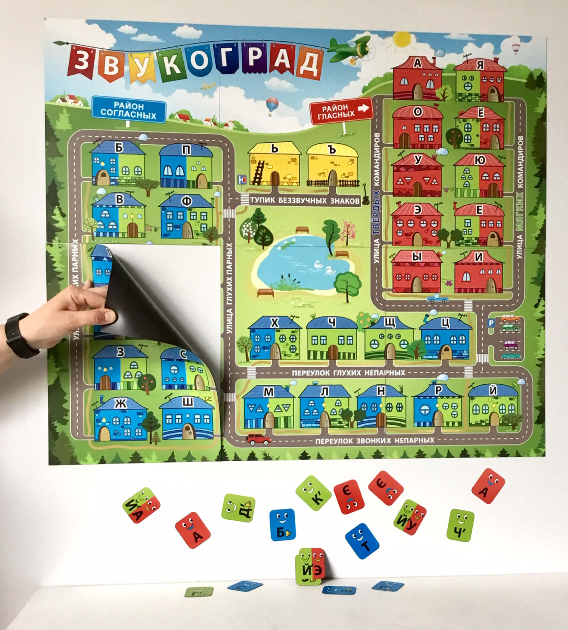 Размер доски 69 см * 80 см. В комплекте 72 магнитных карточки размером 5 см * 4 см.