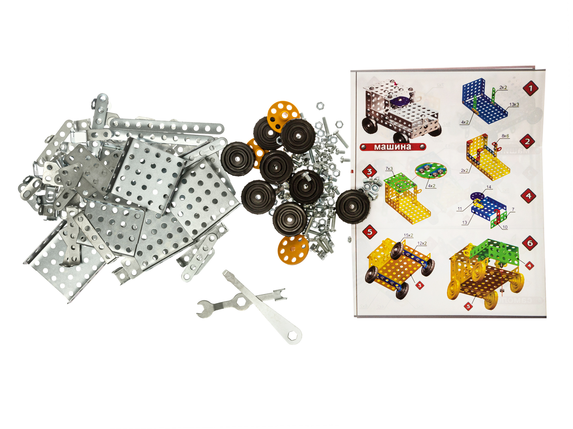 Купить детский металлический конструктор № 1 в деревянной упаковке - достаточно рациональное решение. Ведь этот конструктор не является точной копией металлического конструктора №1 для уроков труда арт.00841 в картонной упаковке. Он более полный по комплектации. Причем, увеличение количества деталей примерно на десять процентов позволило собирать одновременно любые две модели из пяти: машинку № 1, кресло, самолет, велосипед и машинку № 2. И это всего лишь из 206 элементов. Пожалуй, самое рациональное использование деталей из всей серии конструкторов для уроков труда .