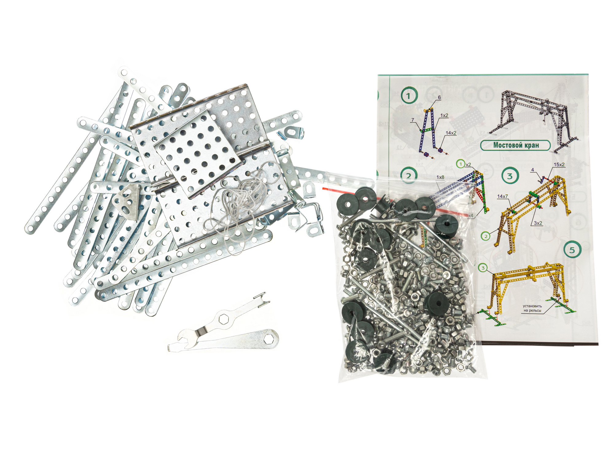 Большой детский конструктор металлический "Краны". С помощью этого конструктора маленький инженер может собрать достаточно сложные модели крана. Данная игрушка поможет раскрыть творческие способности вашего ребенка, конструктивное мышление и смекалку. В наборе вы найдете 434 элемента, из которых собираются 3 модели.